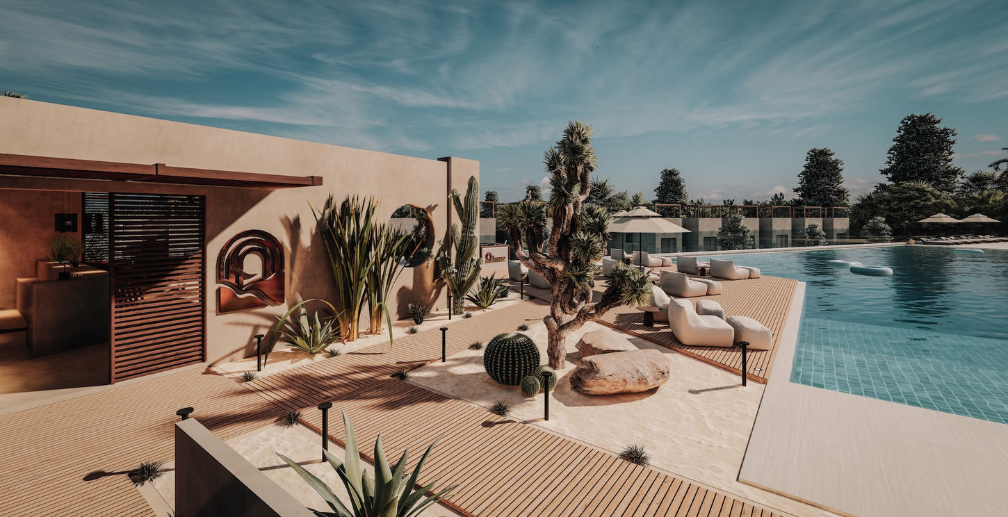 „Mit weißem Sand rund um den Pool, sanfter Lounge-Musik in der Luft und einem Design, das sowohl Ruhe als auch Verbundenheit vermittelt, ist LUNE ein moderner Rückzugsort, an dem Natur und Raffinesse aufeinandertreffen.“